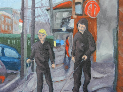 Yes, that’s me. I’ve been talking a lot in my blog about my intention to paint more and more paintings of city scenes and people. Well, I’ve been working pretty hard, and I have a series of new paintings ready for the upcoming open-studios event at our building, 915 Artists (above).